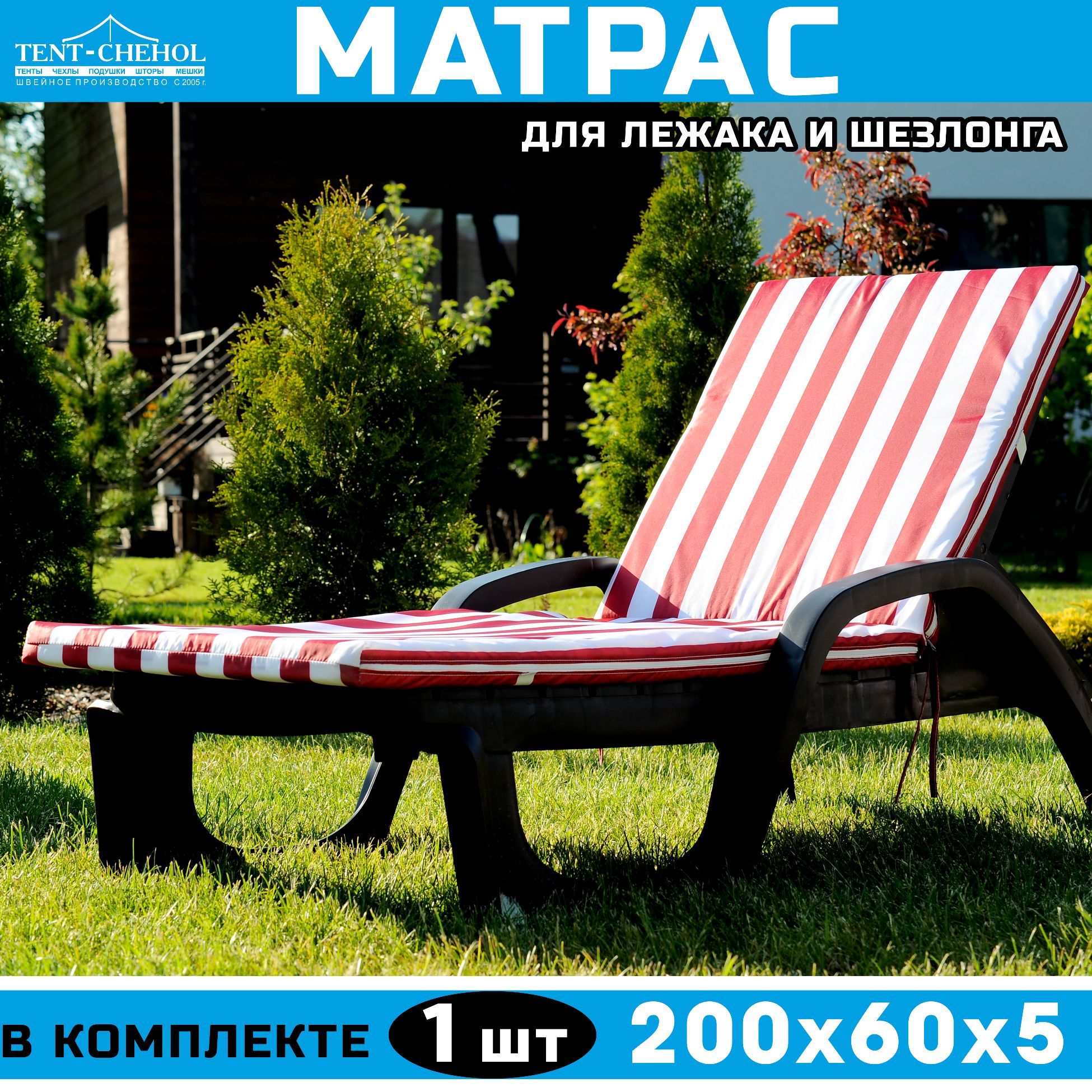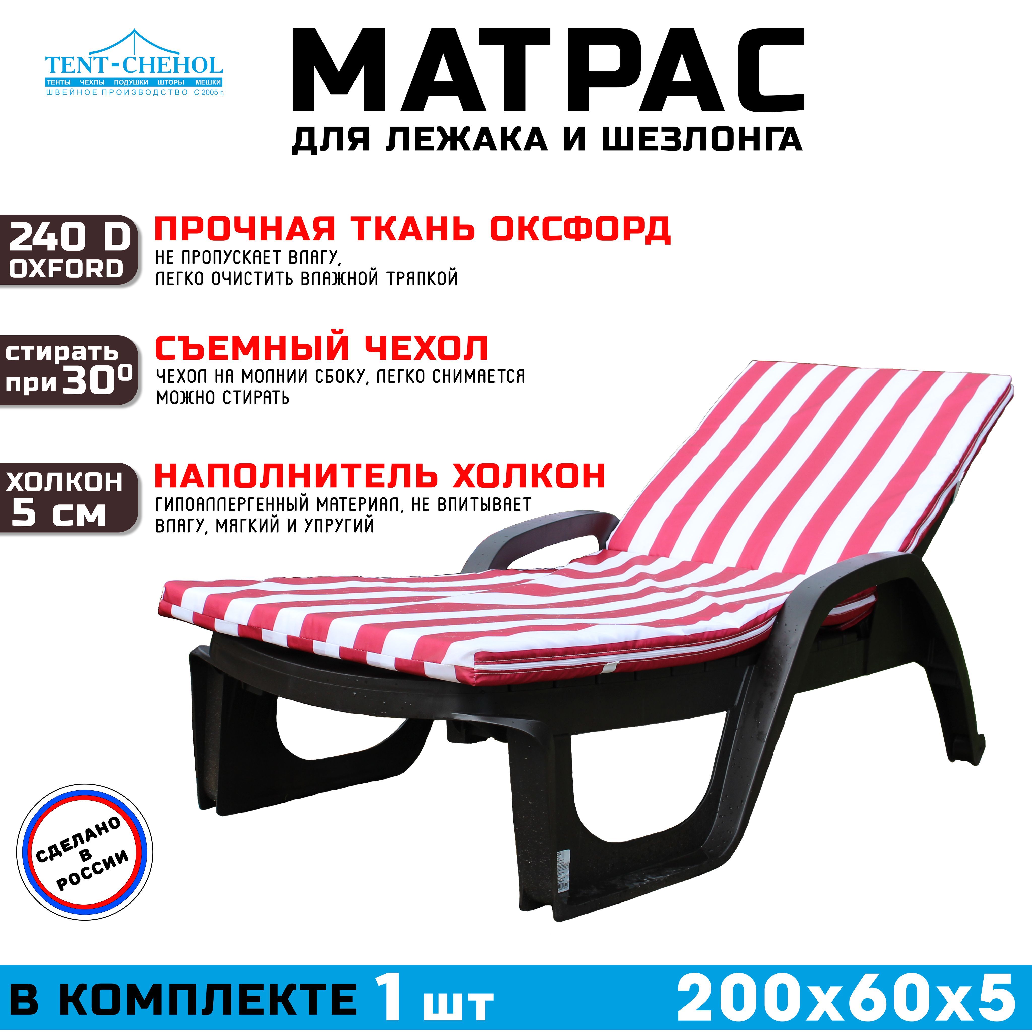 Он имеет длину 200 см, ширину 60 см и высоту 5 см, что идеально подходит для большинства шезлонгов. Наполнитель из холкона обеспечивает мягкую, но поддерживающую поверхность, которая будет поддерживать вашу спину и предотвращать боли в теле.