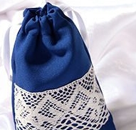 Краткое описание «Мешочек из синего габардина с кружевом»