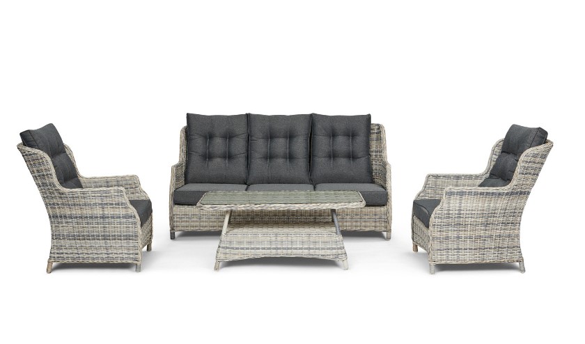 У нас вы можете приобрести комплект подушек, предназначенных для садовой мебели, в комплекте находится пять подушек для сидения размером 60 на 64 см и толщиной 10 см, три подушки для спины размером 61 на 70 см и толщиной 8 см, а также две подушки для спины размером 56 на 70 см и толщиной 8 см. У них тёмно-серый цвет, изготовлены такие подушки из полиэстера.