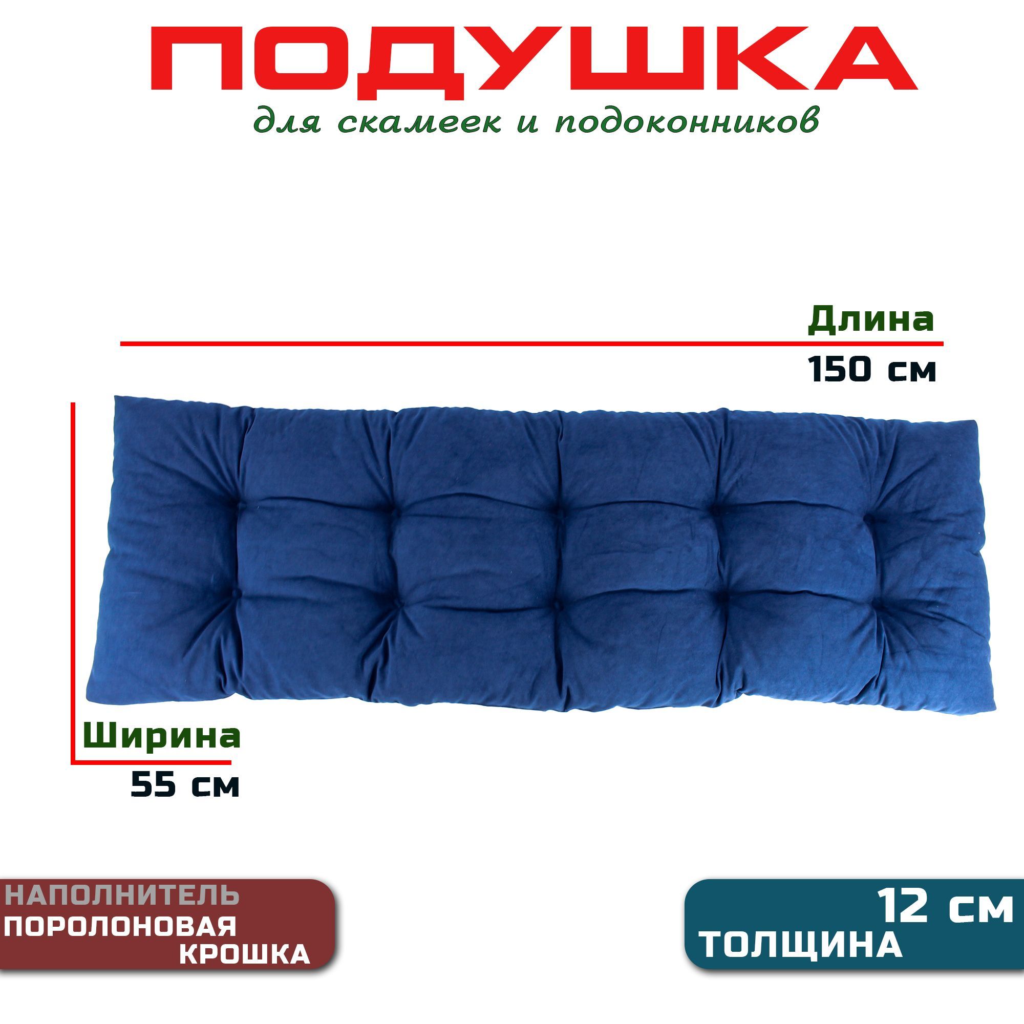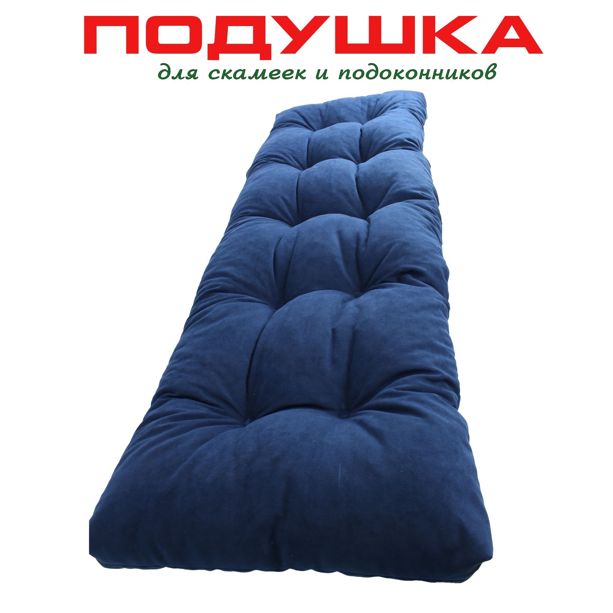 Краткое описание «Подушка на скамью, подоконник 150х55х12 микровелюр, темно-синий»