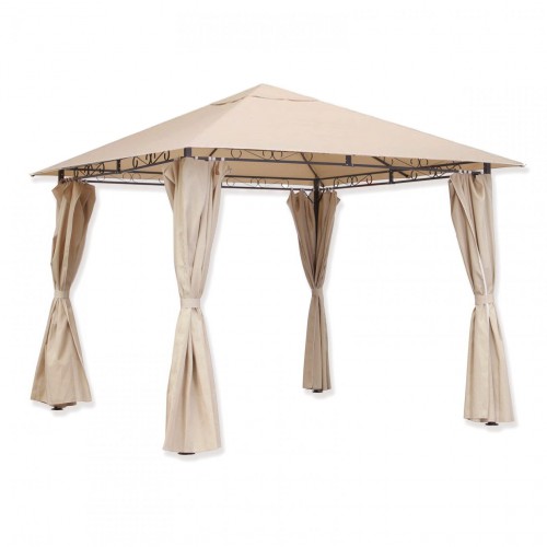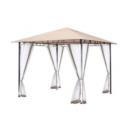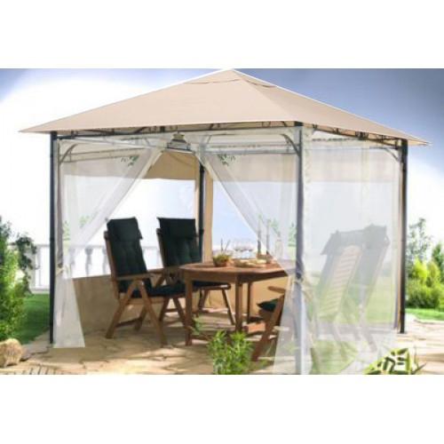 Крыша имеет остроугольную форму, она может быть бежевой, молочной, коричневой, а также зелёного цвета. Размер крыши составляет 300 х 300 сантиметров. Это очень прочный и износостойкий материал, который отлично драпируется. Ткань пропитана при помощи пропитки, изготовленной из полиуретана, благодаря этому шатёр надёжно защищается от воды, ветра, грязи, а также любых осадков и плохой погоды. Произведена данная продукция в России. При этом она может иметь разную плотность в зависимости от того, какие эксплуатационные характеристики вам нужны. Существуют как самые тонкие и лёгкие варианты, так и самые тяжелые и жёсткие изделия.
