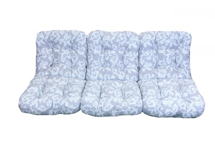 В данном комплекте находятся три отдельные подушки, у каждой есть сидение и спинка, на верхней и нижней части располагаются змейки, благодаря этому при необходимости чехлы можно снять, а также стирать их при помощи стиральной машины. Для того, чтобы подушки не сползали во время раскачивания, по бокам располагаются завязки, предназначенные для фиксации. Для того, чтобы приобрести данное изделие, вам просто нужно добавить в корзину необходимое количество позиций и оформить заказ.