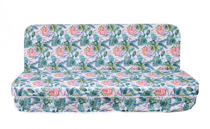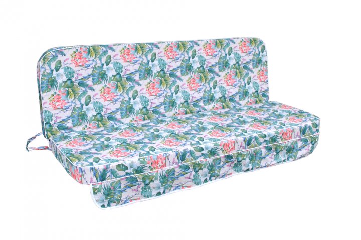 Данный матрас предназначен для садовой качели. Такие матрасы изготавливаются из универсальных тканей, изготовленных в Испании. Благодаря тому, что в такой ткани огромный процент натуральных волокон, она замечательно пропускает воздух, а также является максимально приятной на ощупь. Эта ткань устойчива к появлению пятен, она с лёгкостью разглаживается. Наполнитель изготовлен из пенополиуретана вторичного вспенивания. Спинка, а также сиденье матраса выполнены на молнии, поэтому наполнитель с лёгкостью можно вынуть, а чехол легко можно постирать. Для того, чтобы матрас надёжно держался на качели, на нём есть специальные завязки по бокам.