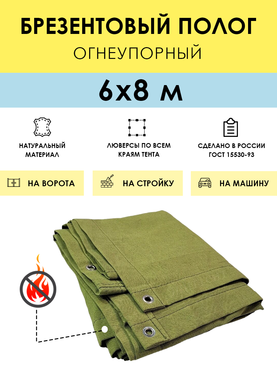 Краткое описание «Полог брезентовый огнеупорный 6x8м, с люверсами (стандарт)»